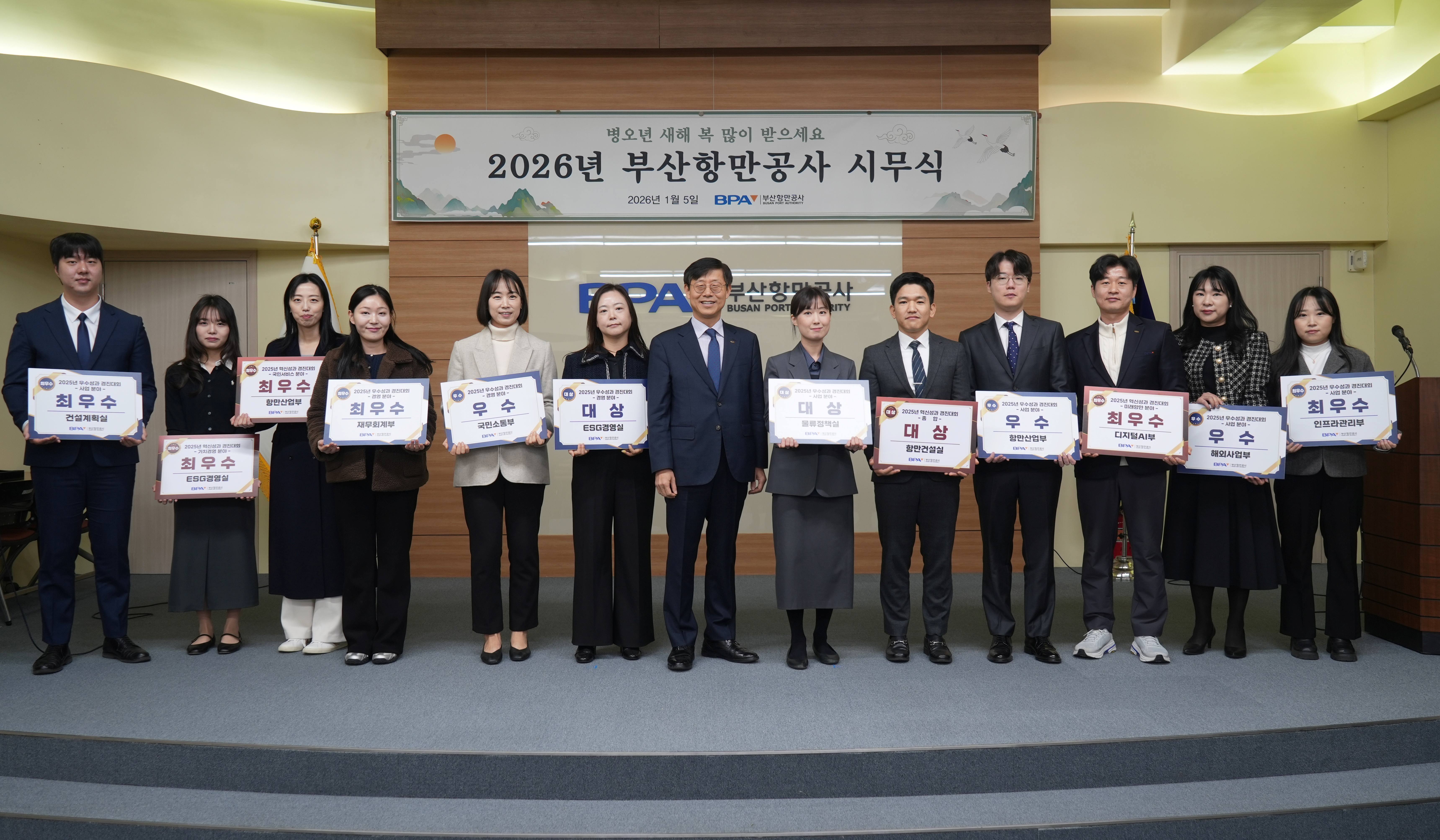 ºÎ»êÇ׸¸°ø»ç(BPA, »çÀå ¼Û»ó±Ù)´Â 1¿ù 5ÀÏ °³ÃÖµÈ 2026³âµµ ºÎ»êÇ׸¸°ø»ç ½Ã¹«½Ä¿¡¼ °ø»ç¸¦ ´ëÇ¥ÇÏ´Â ¡®2025³â Çõ½Å¡¤¿ì¼ö¼º°ú¡¯¸¦ ¼±Á¤ÇÏ¿© Æ÷»óÇß´Ù°í ¹àÇû´Ù.