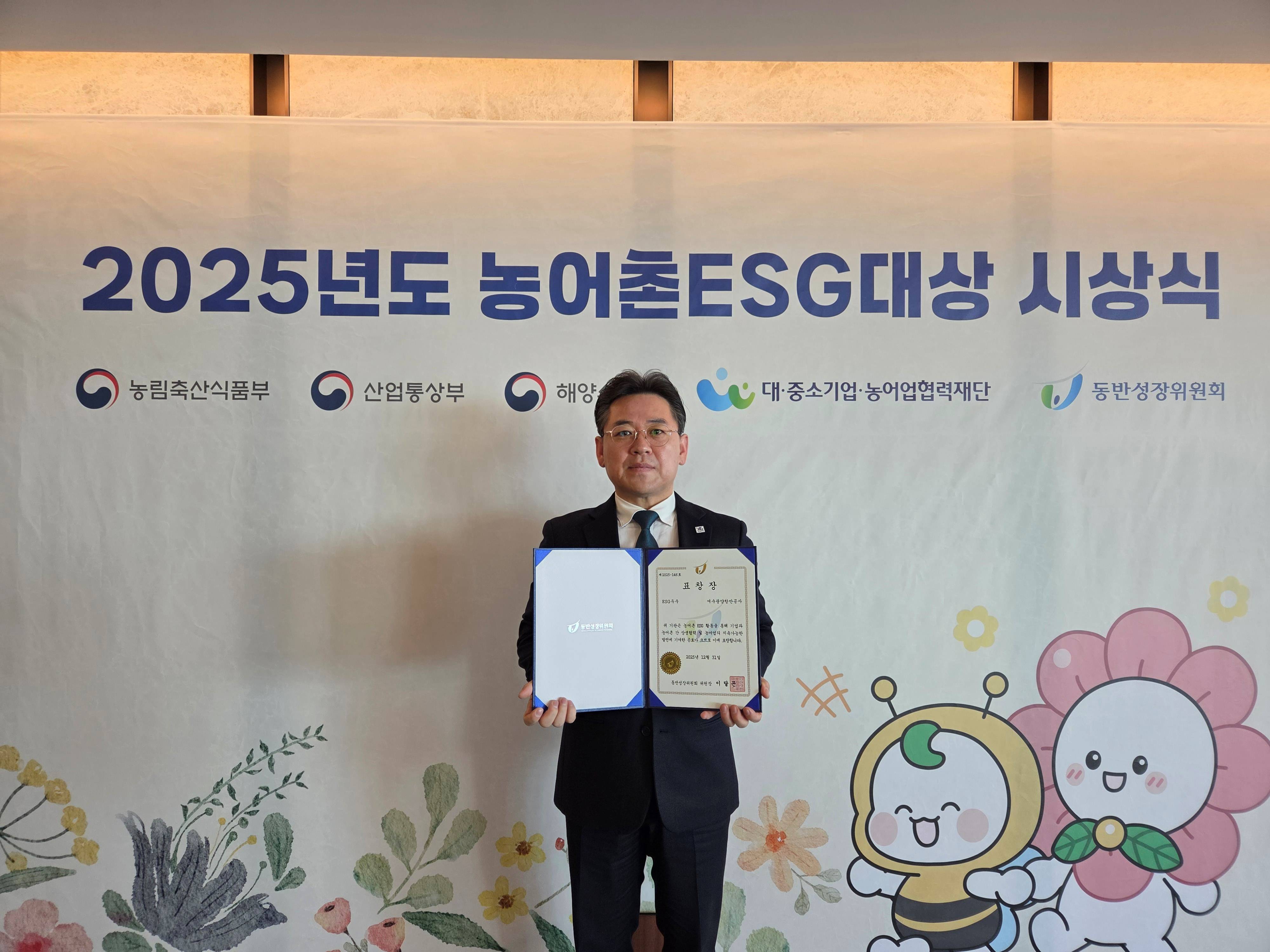 ¡¸³ó¾îÃÌESG½ÇõÀÎÁ¤Á¦¡¹´Â ´ë¡¤Áß¼Ò±â¾÷¡¤³ó¾î¾÷Çù·ÂÀç´Ü, ³ó¸²Ãà»ê½ÄǰºÎ, ÇØ¾ç¼ö»êºÎ°¡ ÇÔ²² ³ó¾îÃÌ Áö¿ªÀÇ ESG°æ¿µÀ» ¼±µµÇÏ°í »ó»ýÇù·Â ¿ì¼ö»ç·Ê¸¦ È®»êÇÑ ±â°ü¡¤±â¾÷À» °øÀÎÇÏ´Â Á¦µµ·Î, °ø»ç´Â ¡®22³â Á¦µµ µµÀÔ ÃʱâºÎÅÍ ¿ÃÇØ±îÁö 4³â ¿¬¼Ó ÀÎÁ¤±â°üÀ¸·Î ³ó¾îÃÌ ESG°æ¿µÀÇ Áö¼Ó¼º ¹× ¿ì¼ö¼ºÀ» ÀÔÁõÇß´Ù.