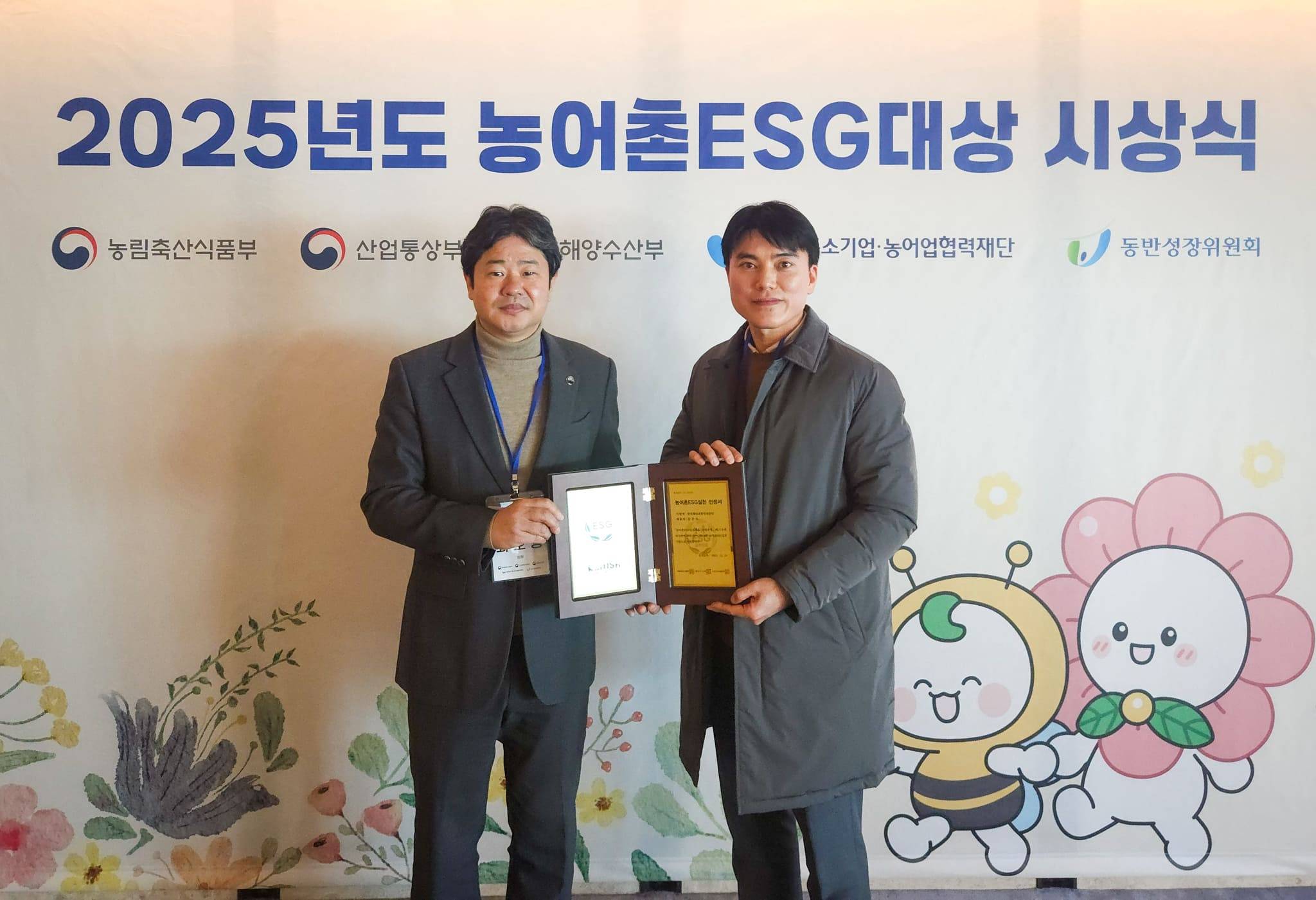 ¡®³ó¾îÃÌ ESG ½ÇõÀÎÁ¤Á¦¡¯´Â ³ó¾îÃÌÀÇ Áö¼Ó °¡´ÉÇÑ ¹ßÀüÀ» À§ÇØ ÀÌ¿¡½ºÁö(ESG) °æ¿µÀ» ½ÇõÇÏ´Â ±â°ü‧±â¾÷À» ¼±Á¤ÇÏ´Â Á¦µµ´Ù.