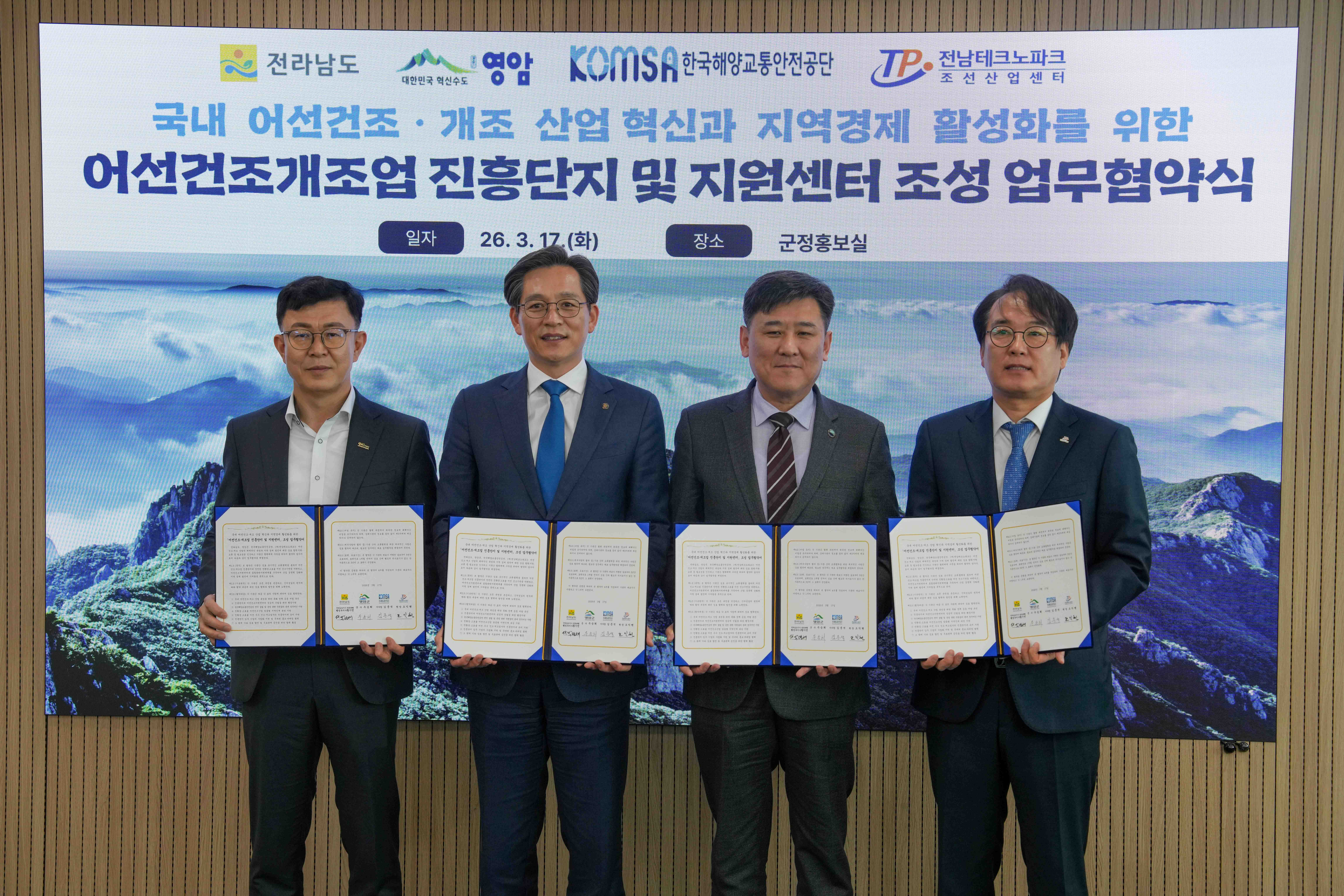 Çѱ¹Çؾ米Åë¾ÈÀü°ø´Ü(KOMSA, ÀÌ»çÀå ±èÁؼ®)Àº 3¿ù 17ÀÏ Àü¶ó³²µµ, ¿µ¾Ï±º, (Àç)Àü³²Å×Å©³ëÆÄÅ©¿Í ¡®±¹³» ¾î¼±°ÇÁ¶¡¤°³Á¶ »ê¾÷ Çõ½Å°ú Áö¿ª°æÁ¦ Ȱ¼ºÈ¡¯¸¦ À§ÇÑ 4ÀÚ°£ ¾÷¹«Çù¾àÀ» ü°áÇß´Ù.