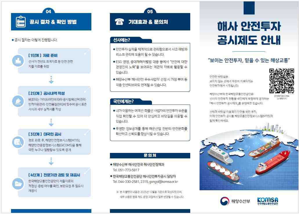 ÇØ¾ç¼ö»êºÎ(Àå°ü ȲÁ¾¿ì)´Â ÇØ¿î»çÀÇ ¾ÈÀü°ü¸® ÅõÀÚ ÇöȲÀ» °ø°³ÇÏ´Â ¡®¾ÈÀüÅõÀÚ °ø½ÃÁ¦µµ¡¯¸¦ ¿ÃÇØ º»°Ý ½ÃÇàÇÑ´Ù.